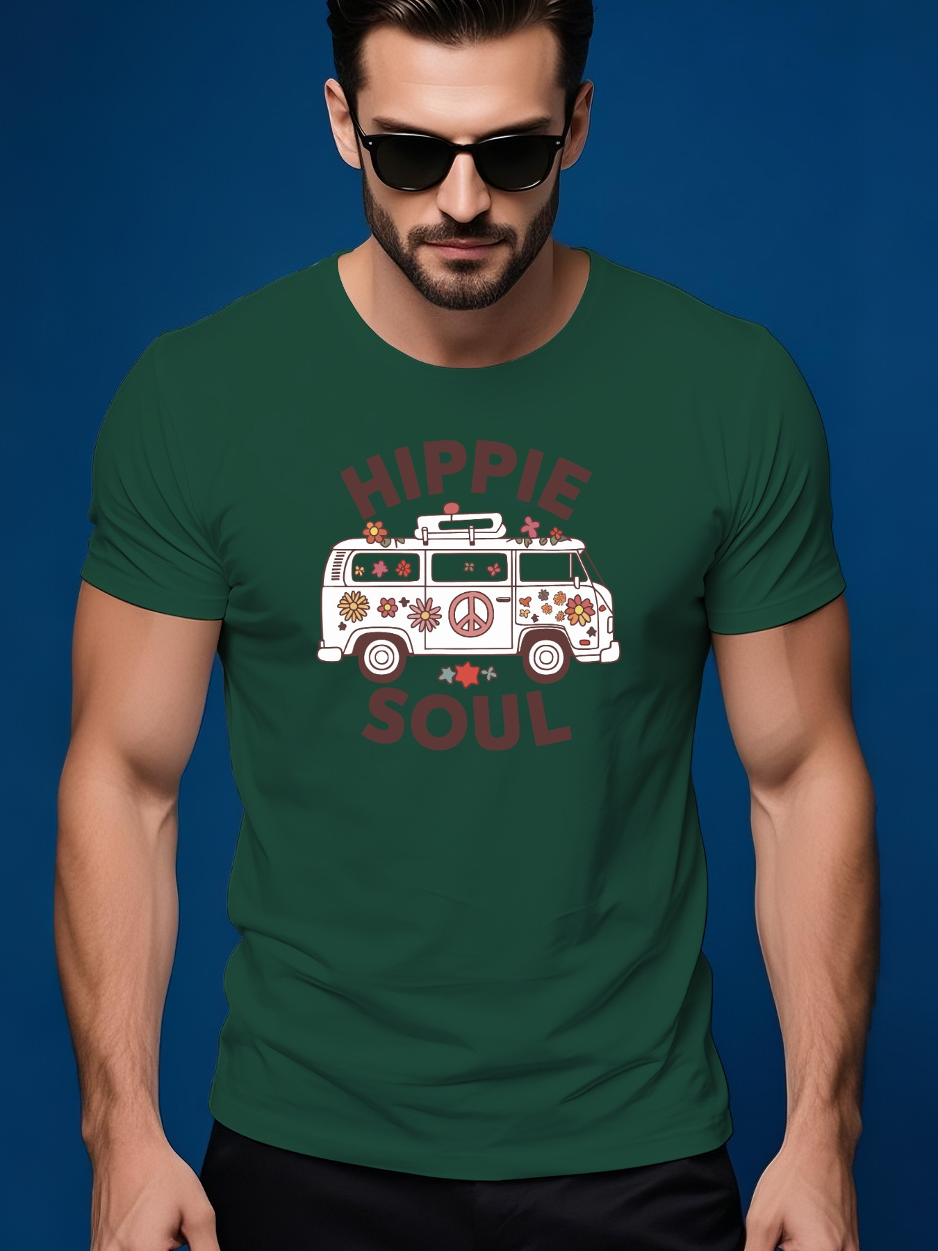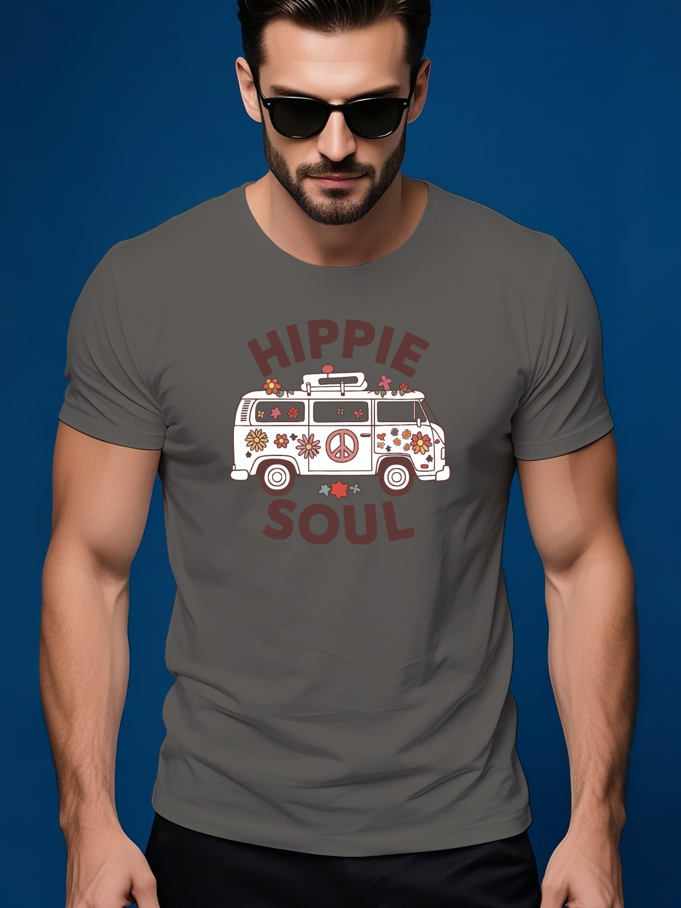 Unleash your inner wanderer! The Hippie Soul Tee calls to free spirits. Available in black, gray, green, red, khaki, blue hues, & more. Sizes S-XXXL. Mens fit for ages 13+.