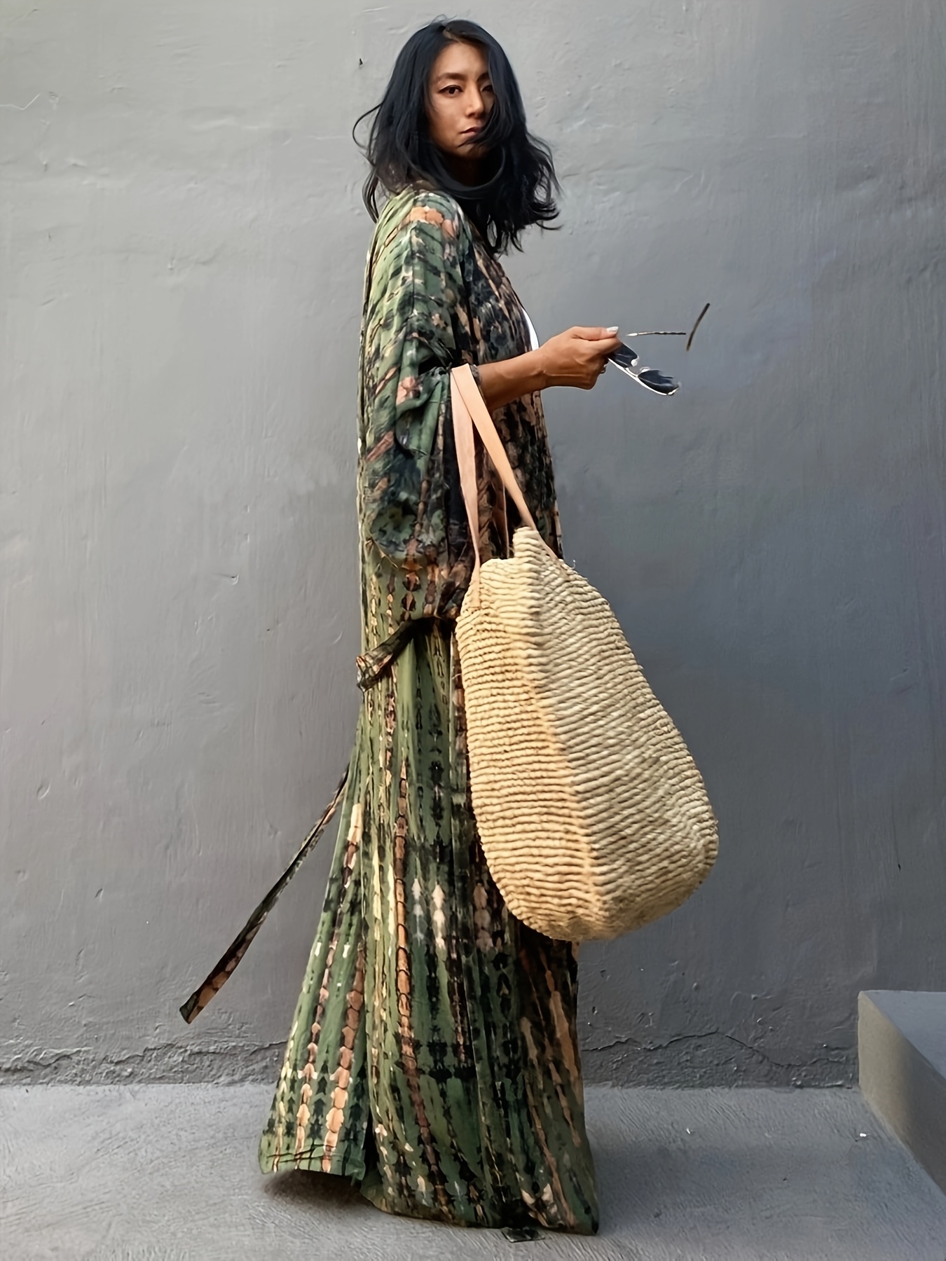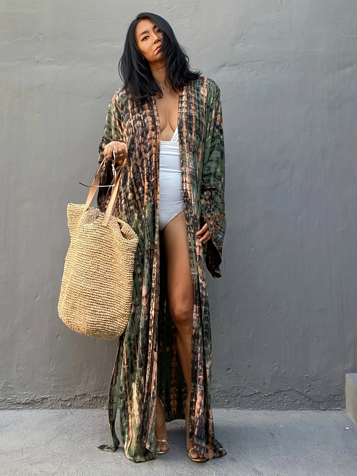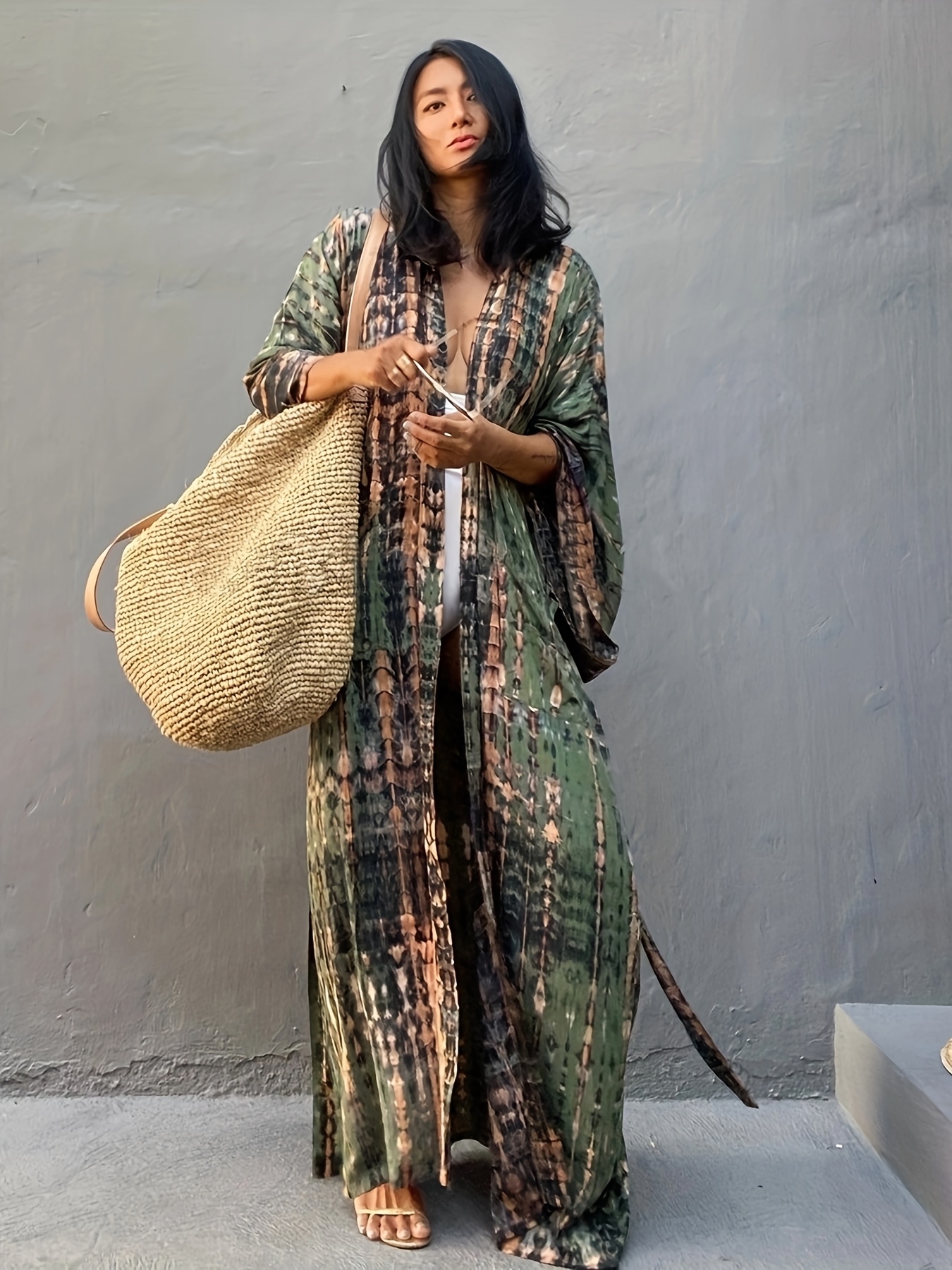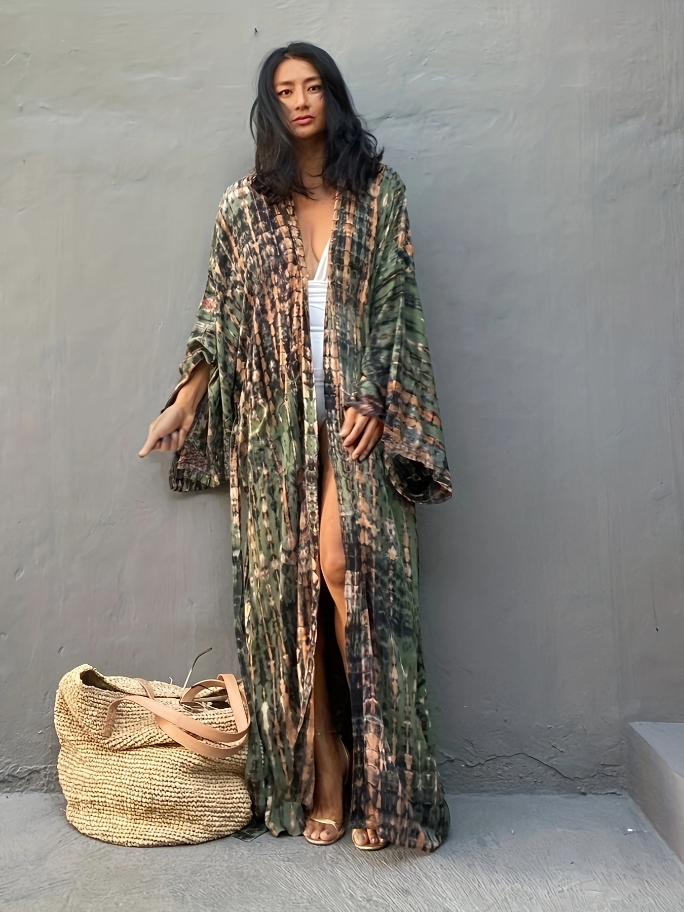 Unleash your inner bohemian goddess! This camouflage print cover-up is your passport to effortless beach style.