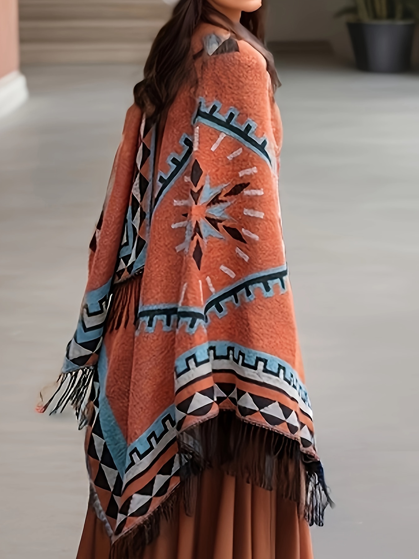 Explore the world in style. Cozy ethnic shawl, perfect for any adventure.